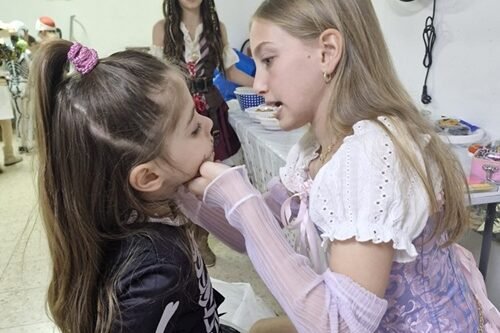 מסיבת פורים במקלט הבניין. עמית, תמר ומיה החליטו שגם אזעקות ומלחמה לא מבטלים את שמחת פורים