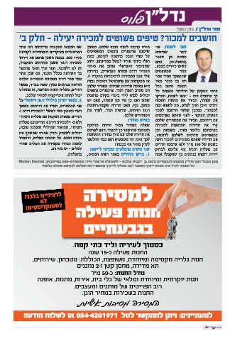 העדוה חולשל וא 054-4201971 .לטל רשקתהל ןתינ :םיניינועמל