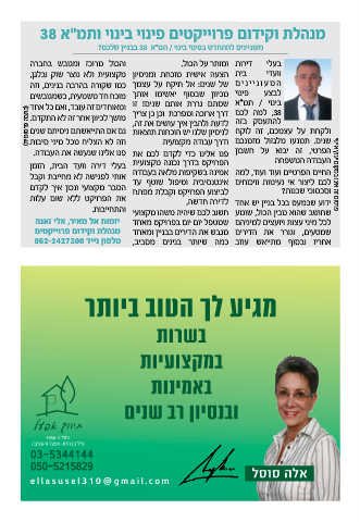?םכלש ןיינבב 38 א"מת / יוניב יוניפב שדחתהל םיניינועמ